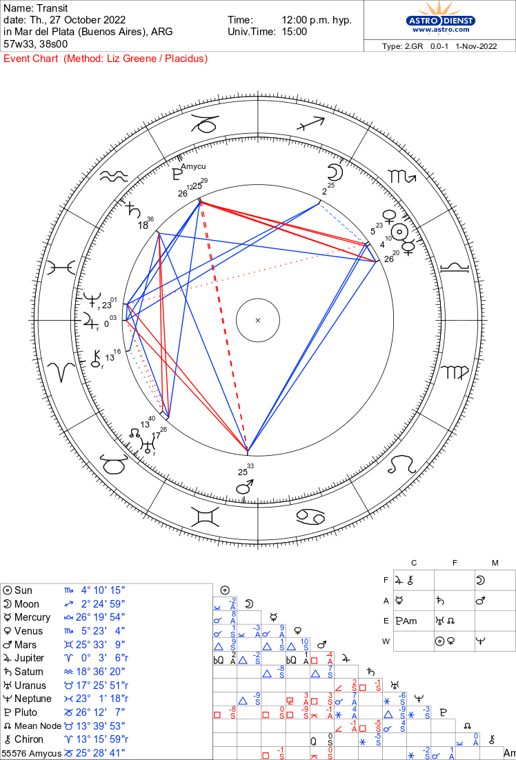 Mercury (resourceful, educational (kids come to interact with Transformer and also with recycling so they know that everything they use remains on Earth)) trine Mars (initiative, iron) square Pluto (transmutation, transforming or recycling of energy (built entirely from scrap metal, has appeared in a junkyard)) square Amycus (any mechanical device that enables a shift in energy, for instance a clutch for shifting gears, monuments (Optimus Prime has caught the attention of the local community, with the media, politicians and members of the public all wanting to get to know the area's newest resident)).