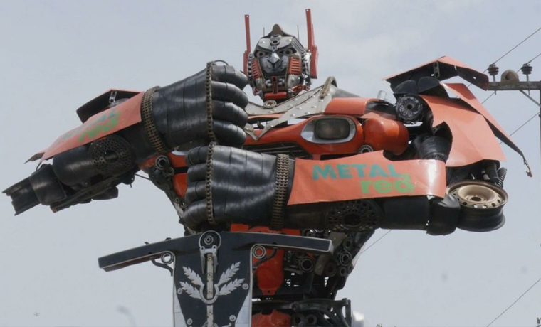 A huge model of a Transformer robot, built entirely from scrap metal, has appeared in a junkyard near Mar del Plata to raise awareness about the importance of recycling, as seen in footage filmed on Wednesday.